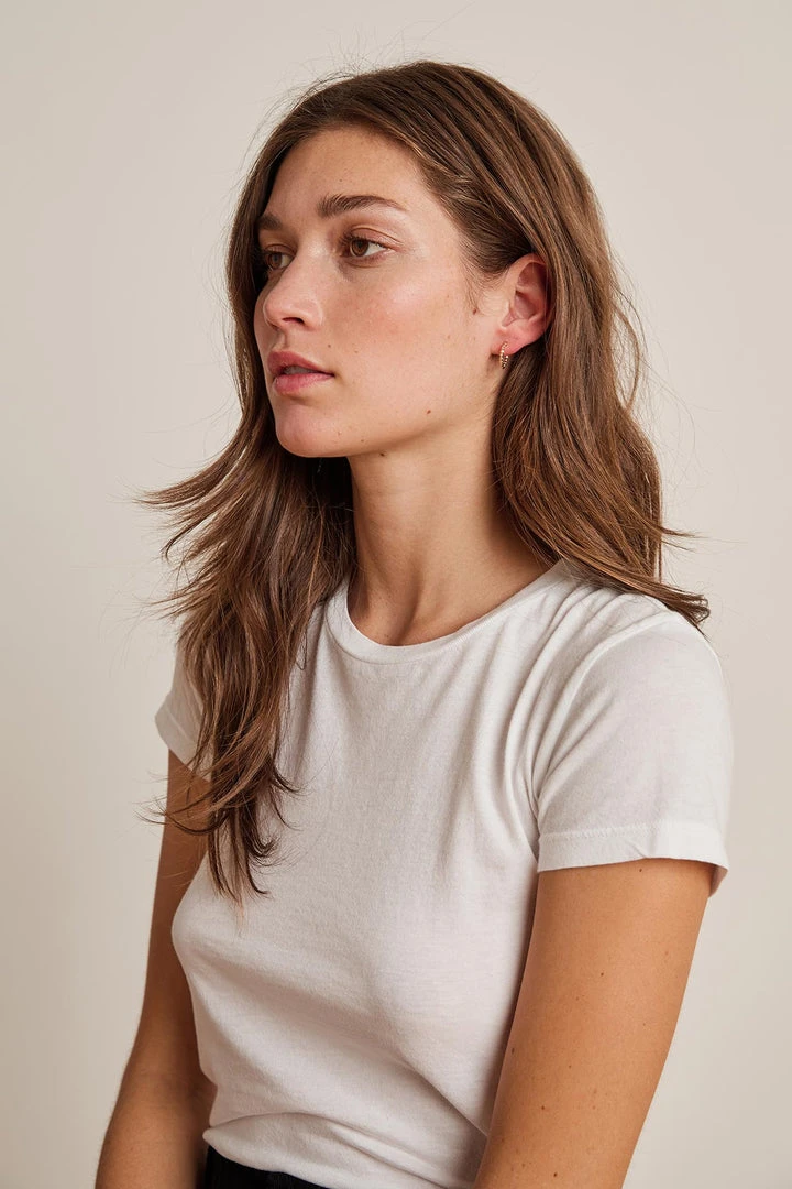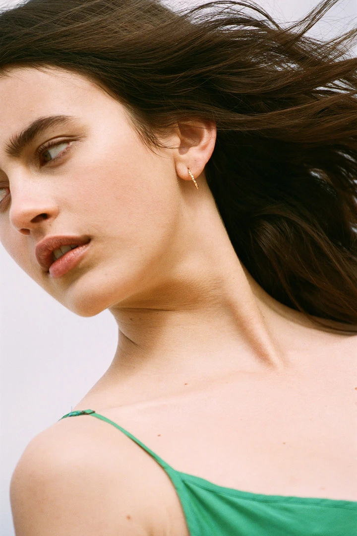 Hoop dreams. Handcrafted from a 14K gold fill, these petite hoops look like tiny beads hammered together to form a chic loop. These beauties give that perfect hint of everyday sparkle and are great solo or layered if you have multiple ear piercings.