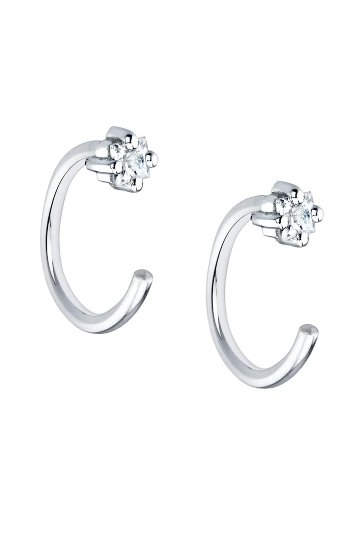 embrace yourself. these sit snugly against your lobes thanks to a sterling silver curved bar that is topped off with a brilliant white sapphire. it is the perfect accompaniment to your little black dress.