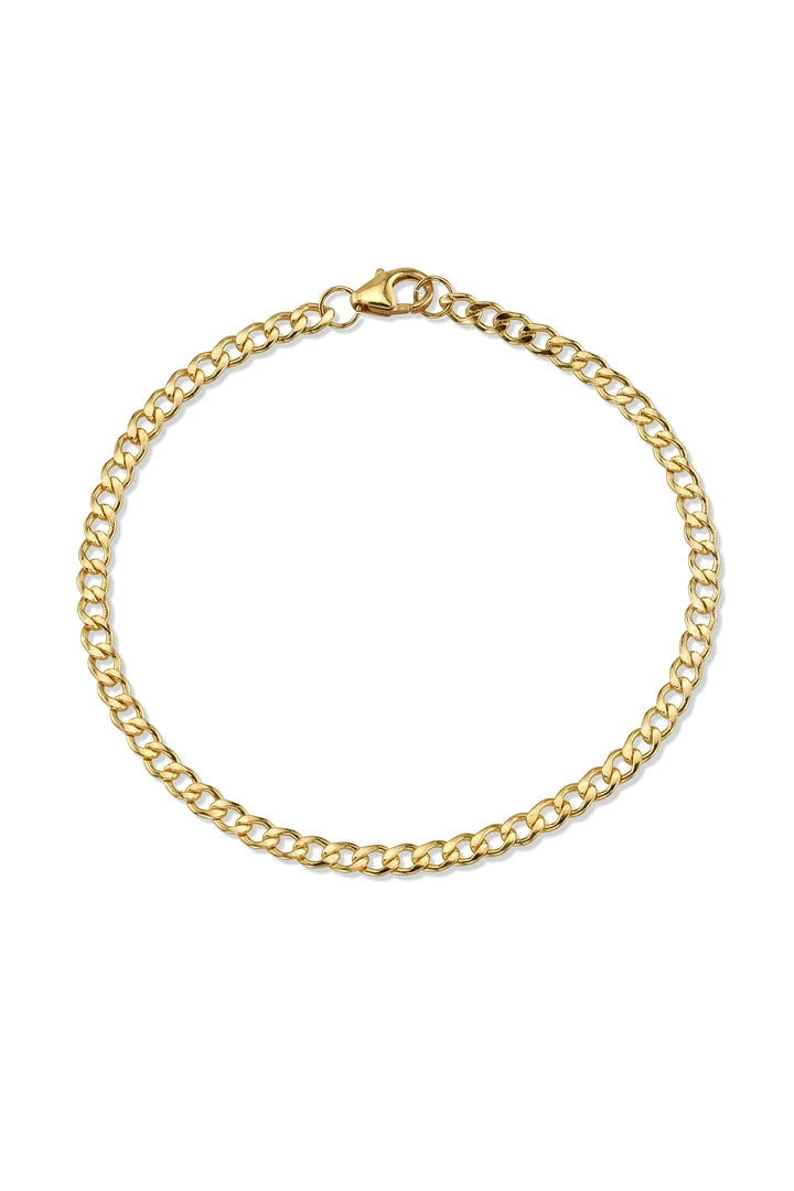 Thereโs certain accessories that every woman needs in her arsenal and great chain bracelet is one of them. Crafted from a gold-fill curb chain and secured with a lobster clasp, this diminutive wrist dangler is great solo or layered up with a cool cuff.