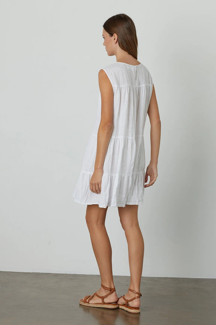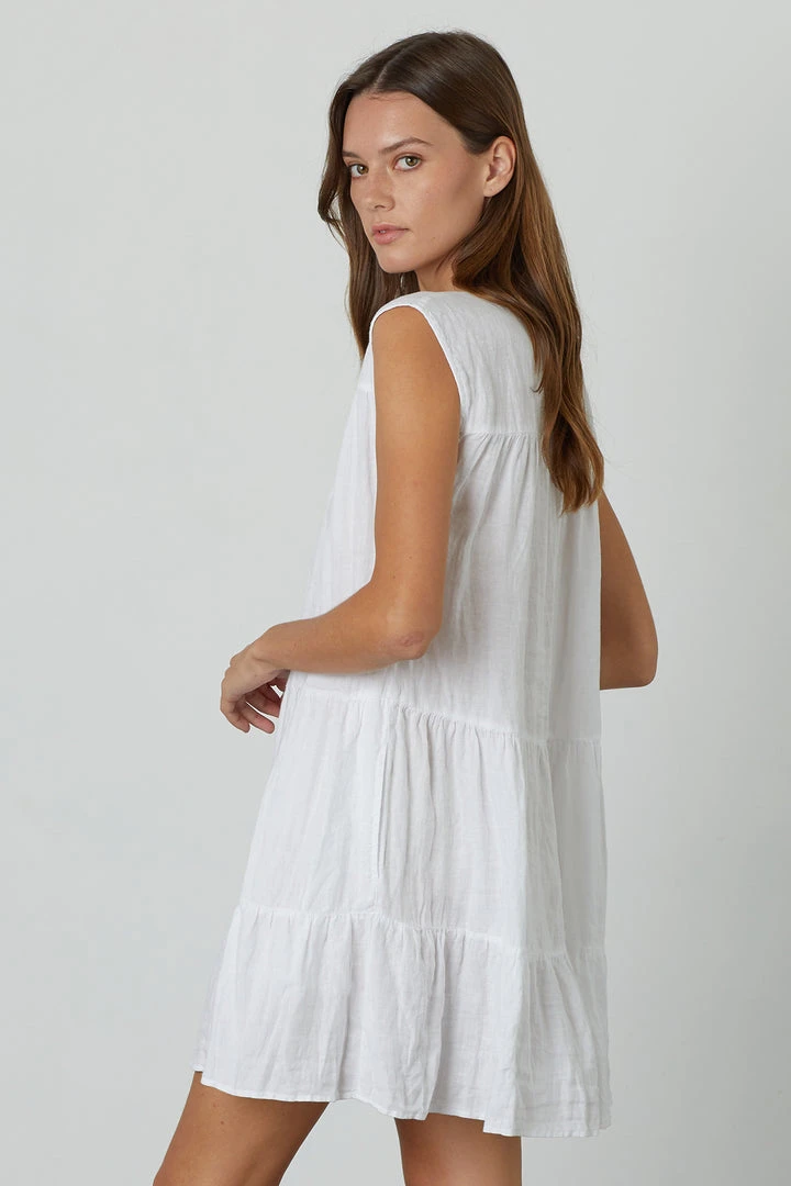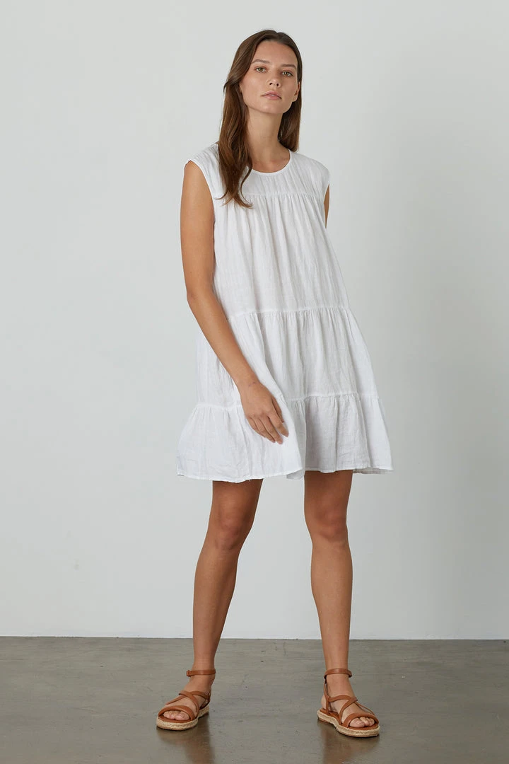 An effortless summer dress should be part of everyoneโs summer style. Crafted from a lightweight linen and featuring horizontal tiers of delicate volume. Endlessly versatile and weekend easy.