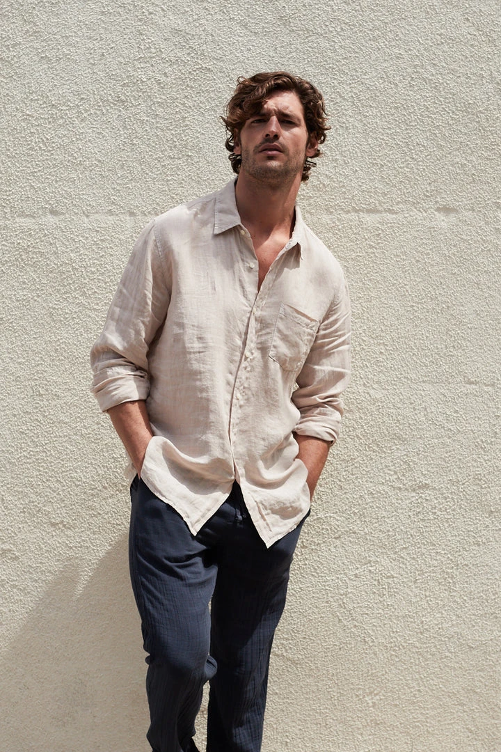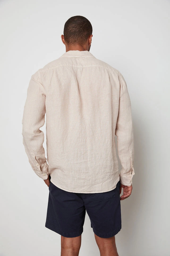 Crafted from a breezy woven linen, this long sleeve button up features a slightly relaxed fit and all the traditional details you know and love.