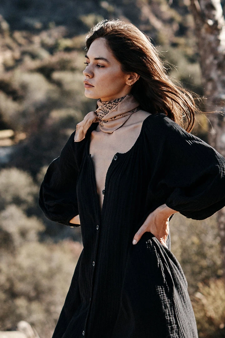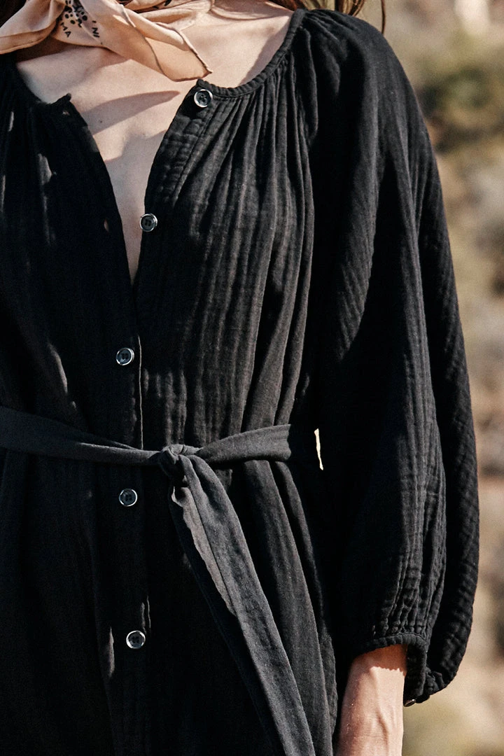 The shirt dress is a mainstay of laid back style. Crafted from our signature cotton gauze and with an updated puffed sleeve, this midi-style is perfect for now but can also be layered when the temps cool.