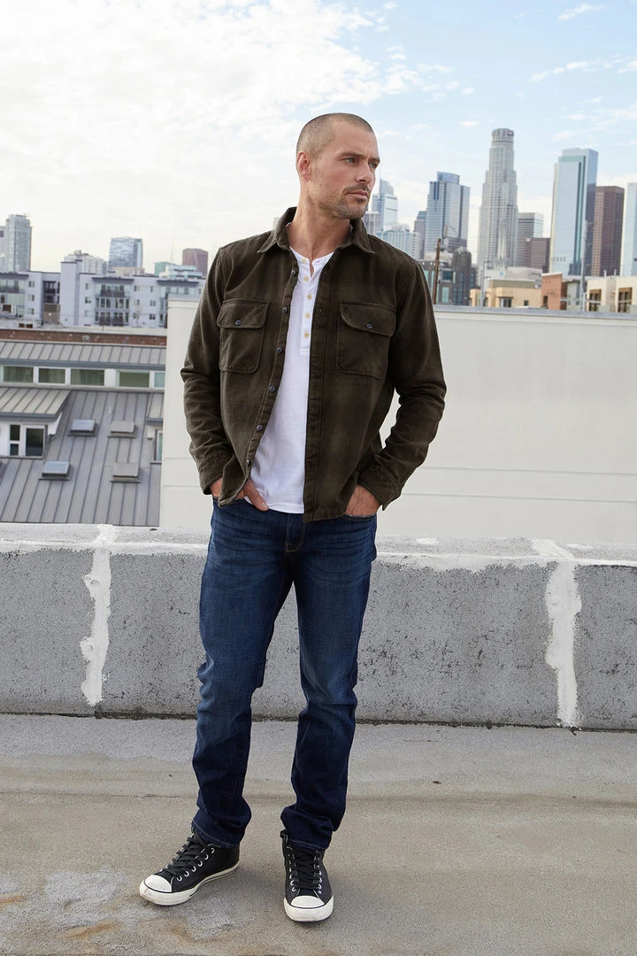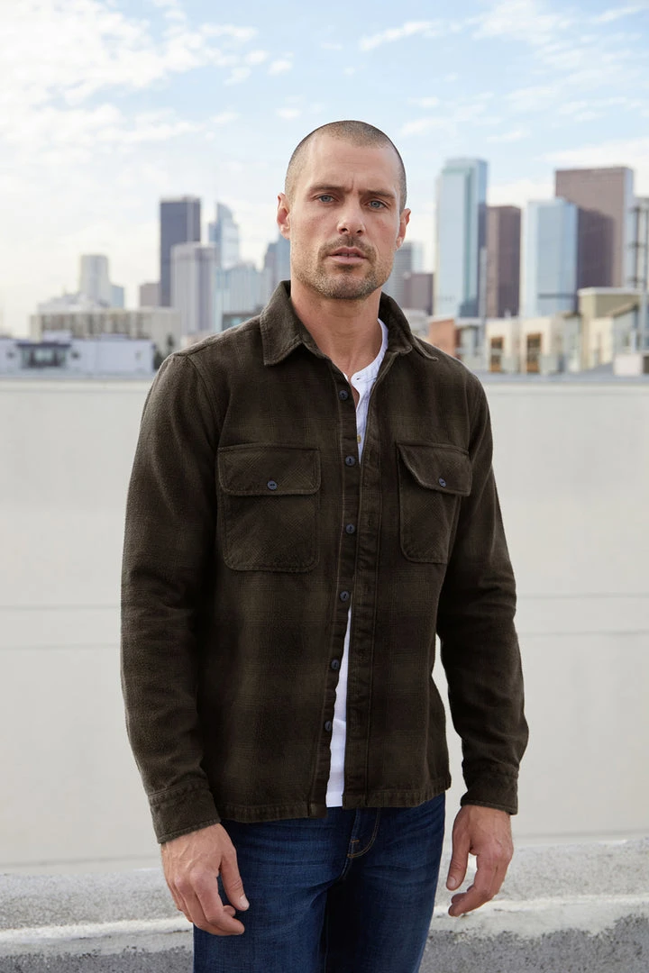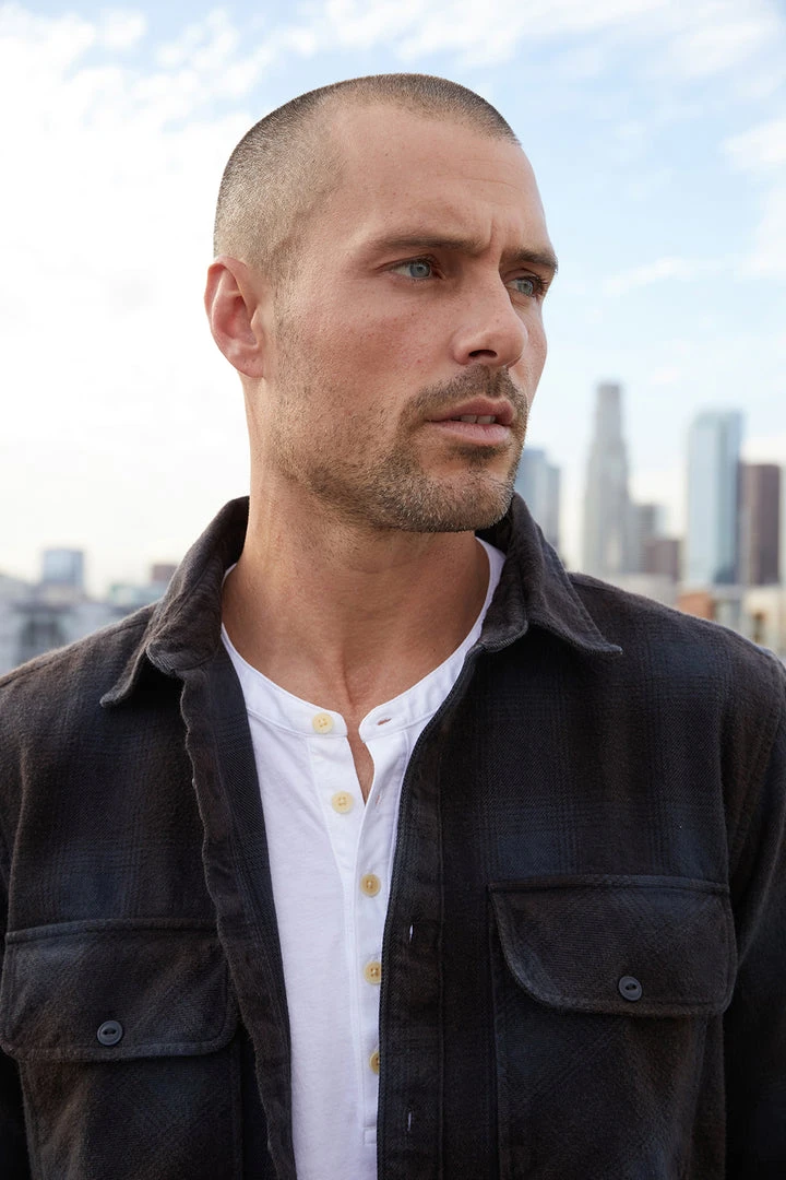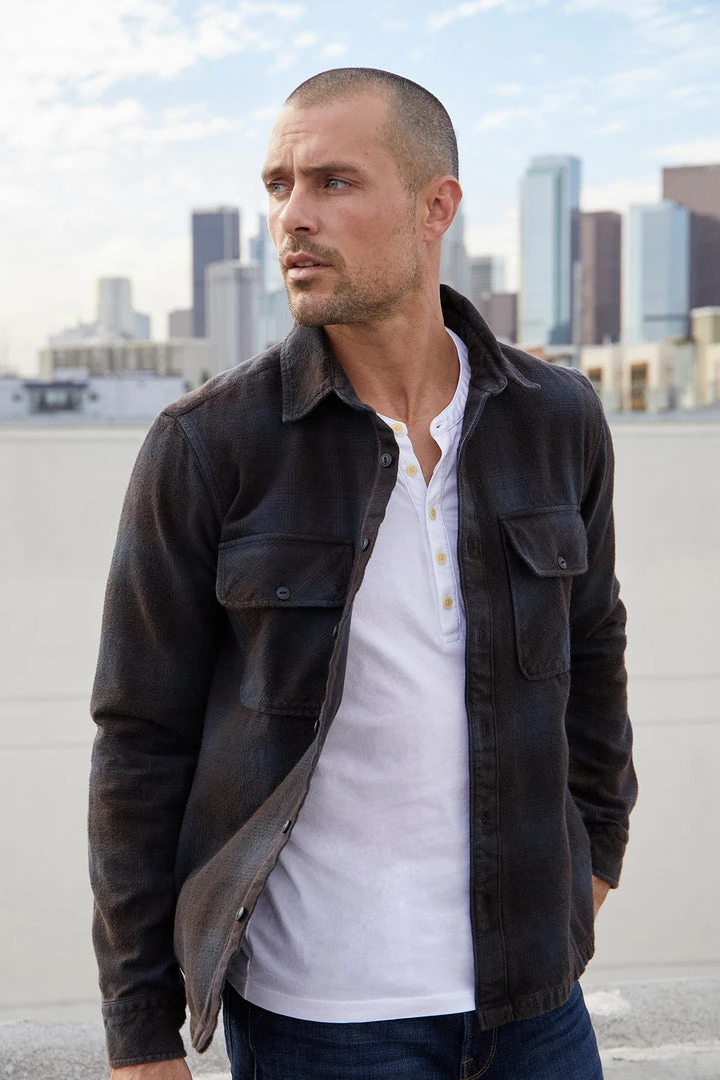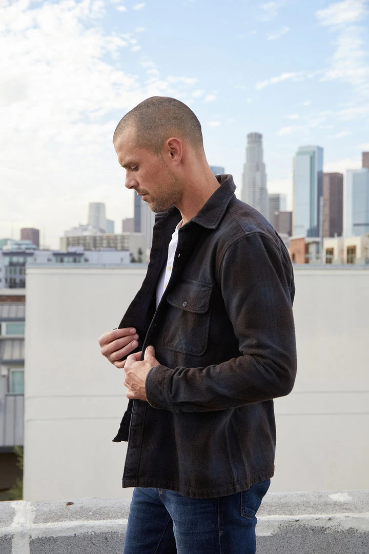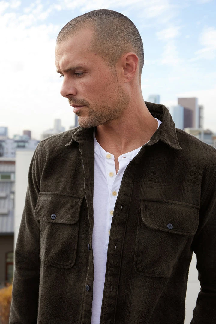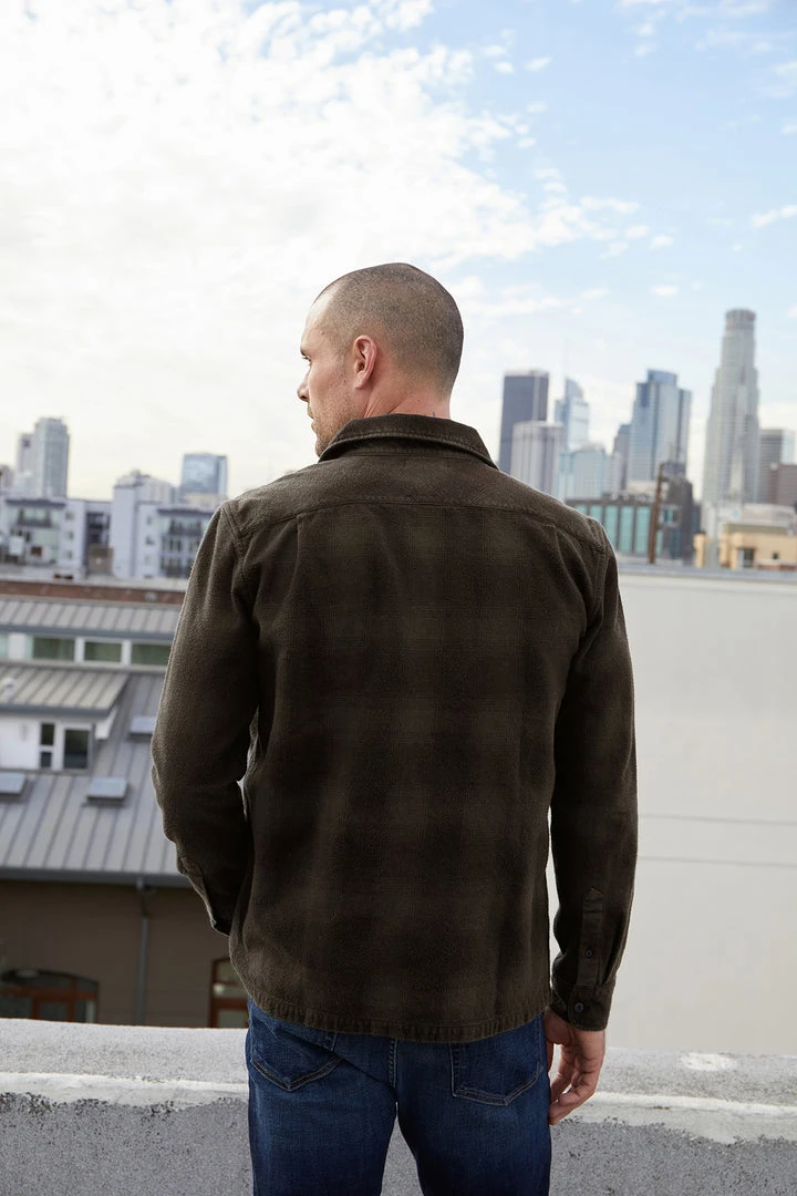 A rugged, fleece shirt that can be worn as a button down or as a lightweight jacket. Featuring button flap pockets at the chest and double buttons on the cuff, this muted plaid is perfect.