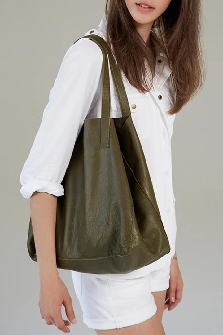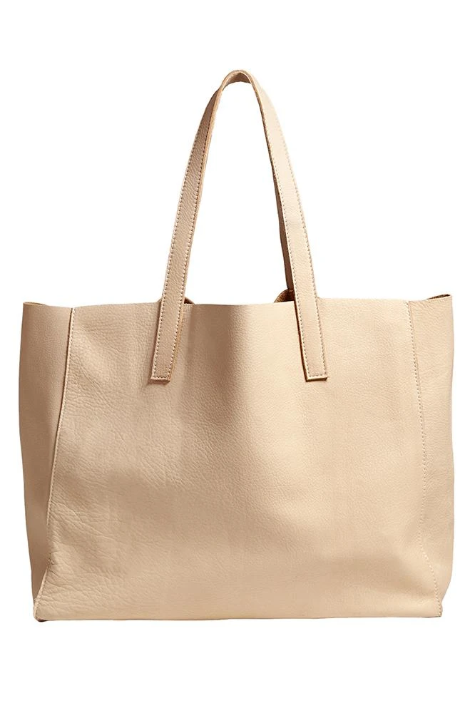 this spacious leather tote is a minimalist’s dream. exquisitely designed with a clean, crisp silhouette, a slight trapeze shape, and a handy pouch to store your valuables. minimalism perfected!
