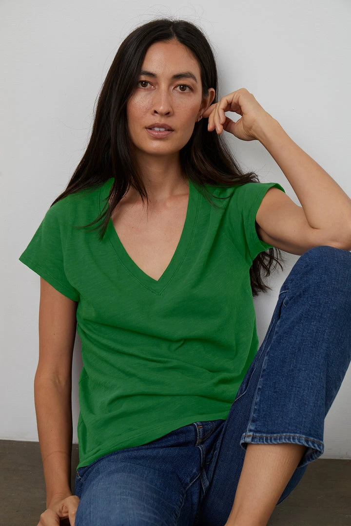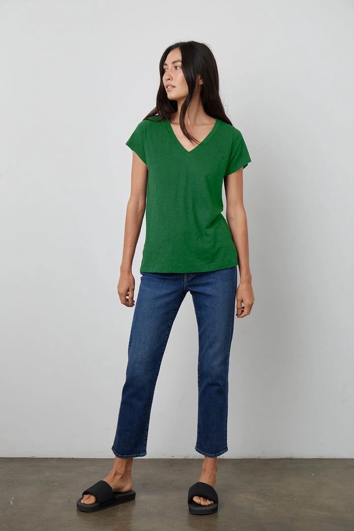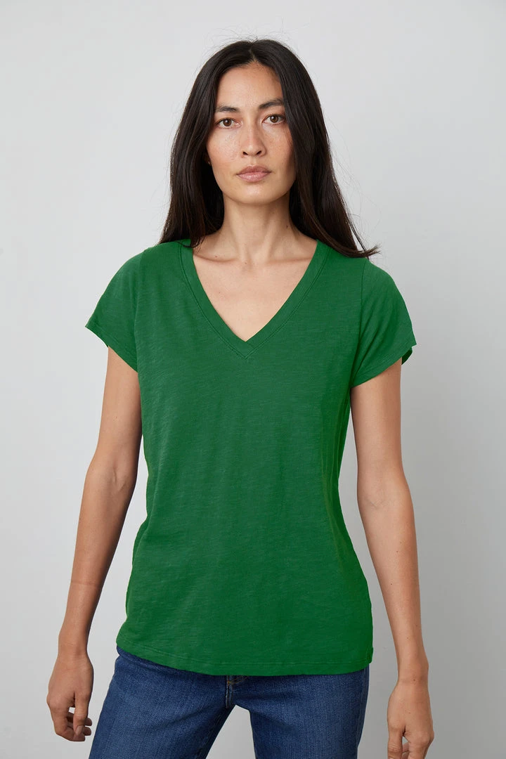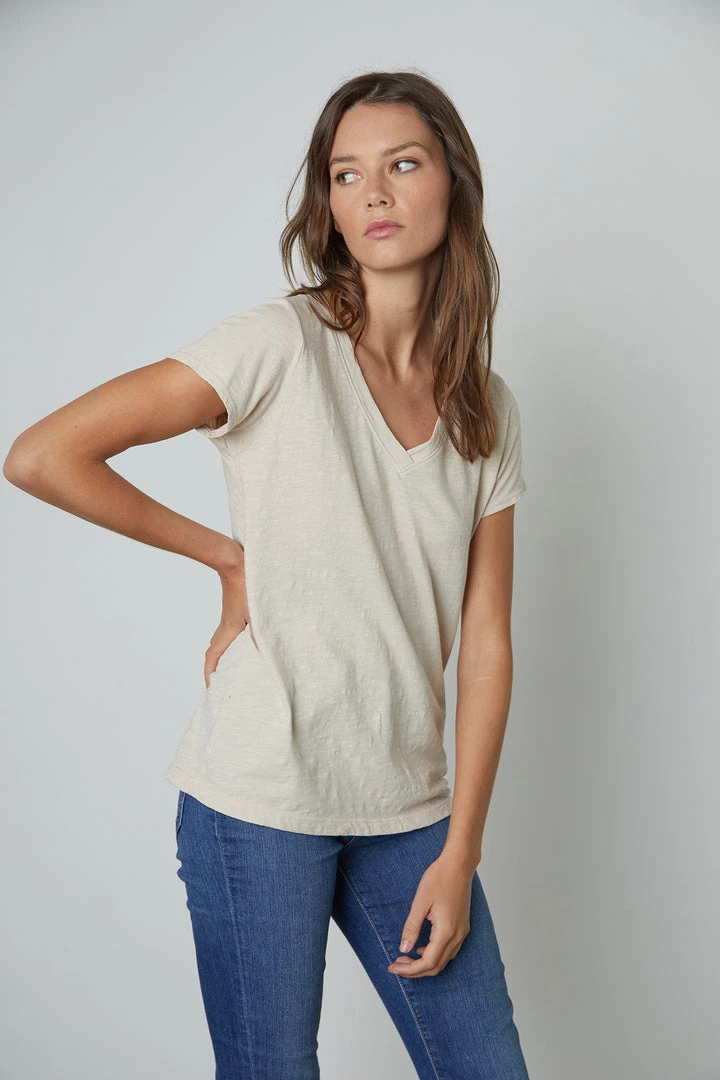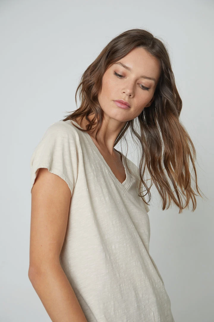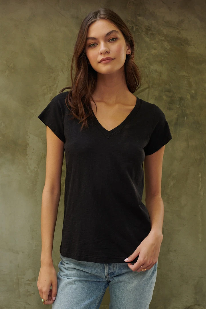 V good in every way. A classic v neck tee inย our originalย cotton slub that has just a hint of texture to it.