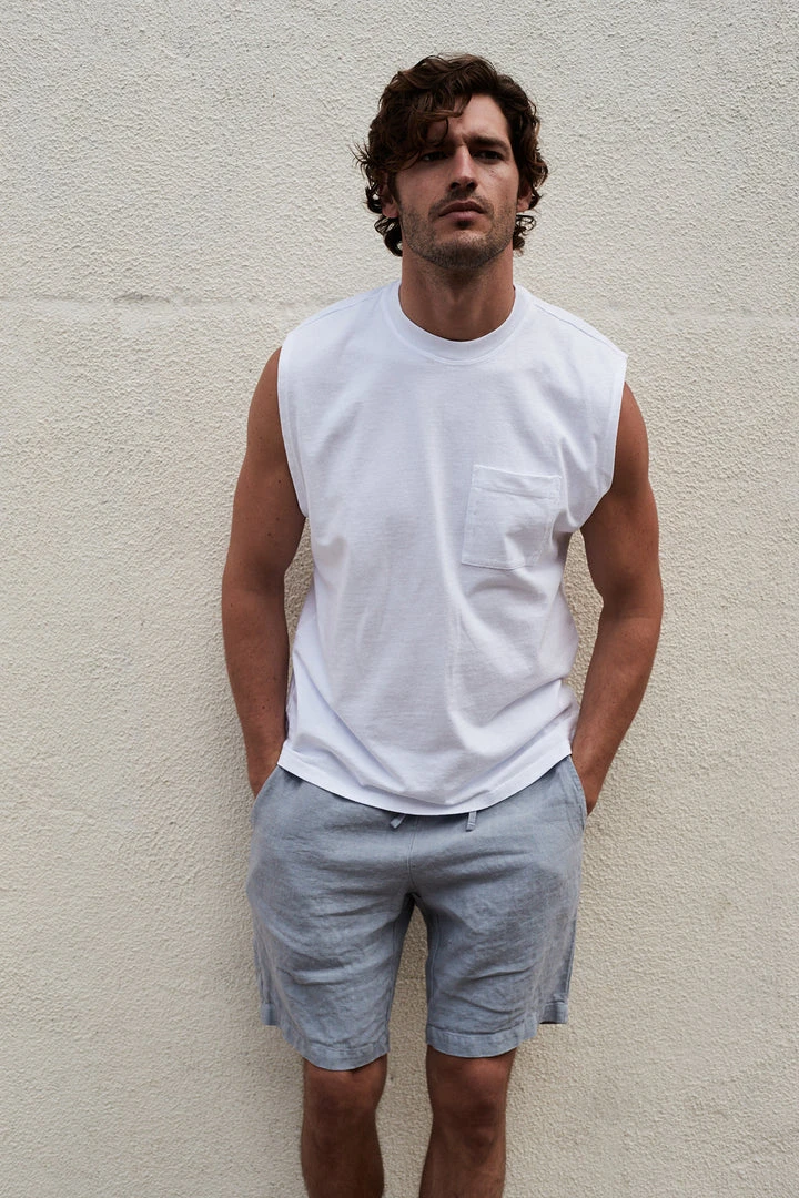 Need we say more? A heavy-weight linen in a classic, pull-on short with a drawstring at the waist. The relaxed fit, slash pockets and neutral color palette make these a summer hero.