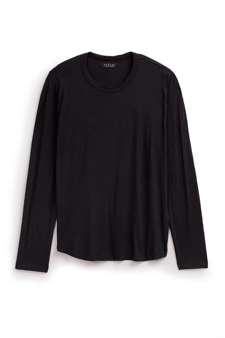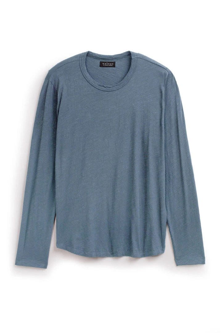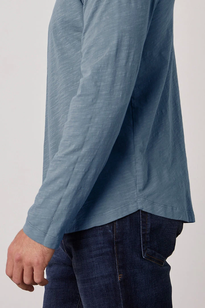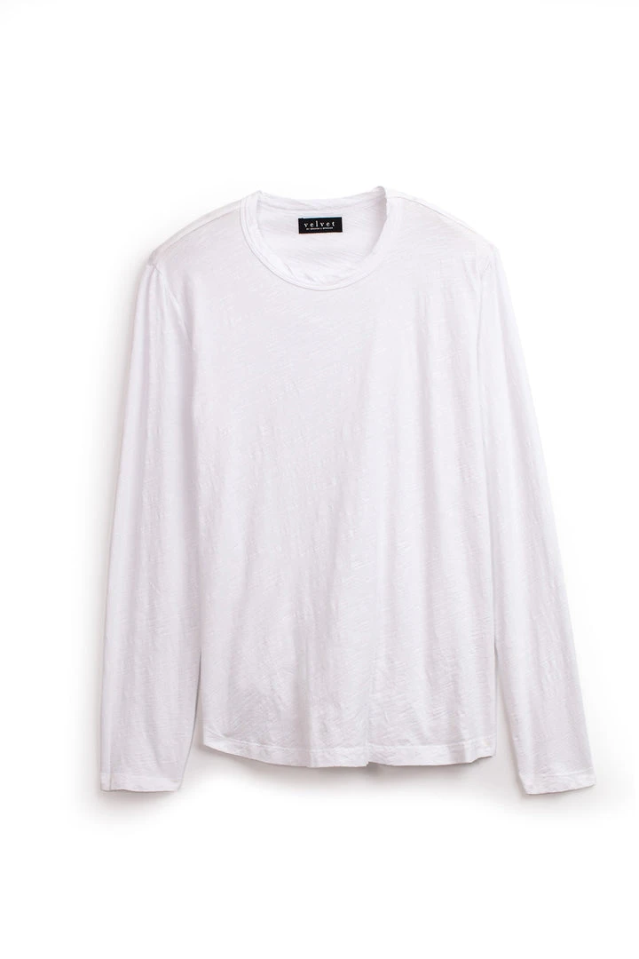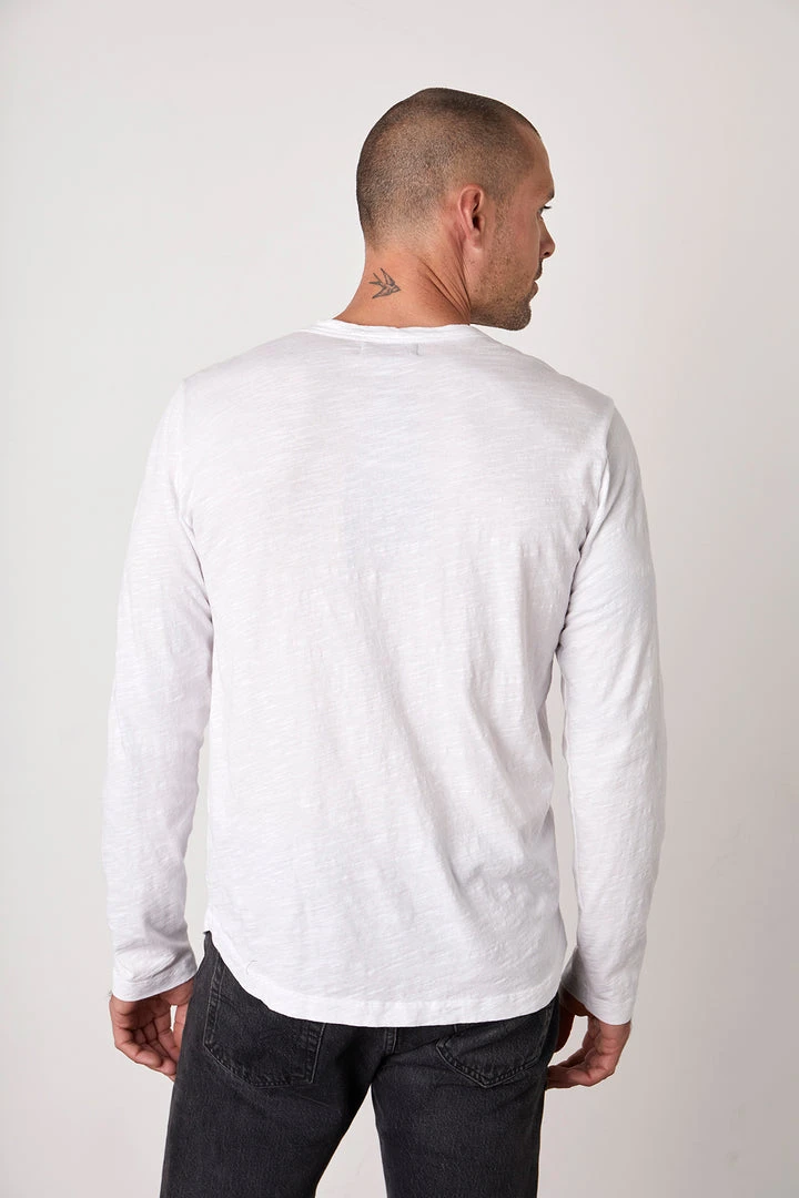 A true slub knit, with its soft vintage-feel texture. A failsafe layering piece with a flawless fit and a subtle curve at the hemline so it hangs perfectly over jeans or shorts.
