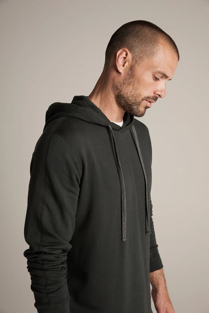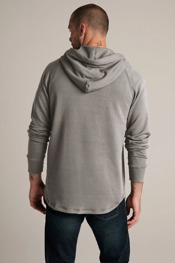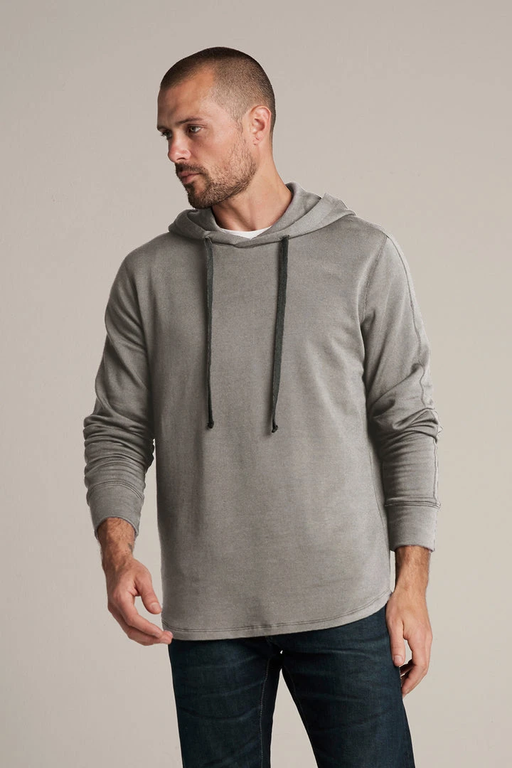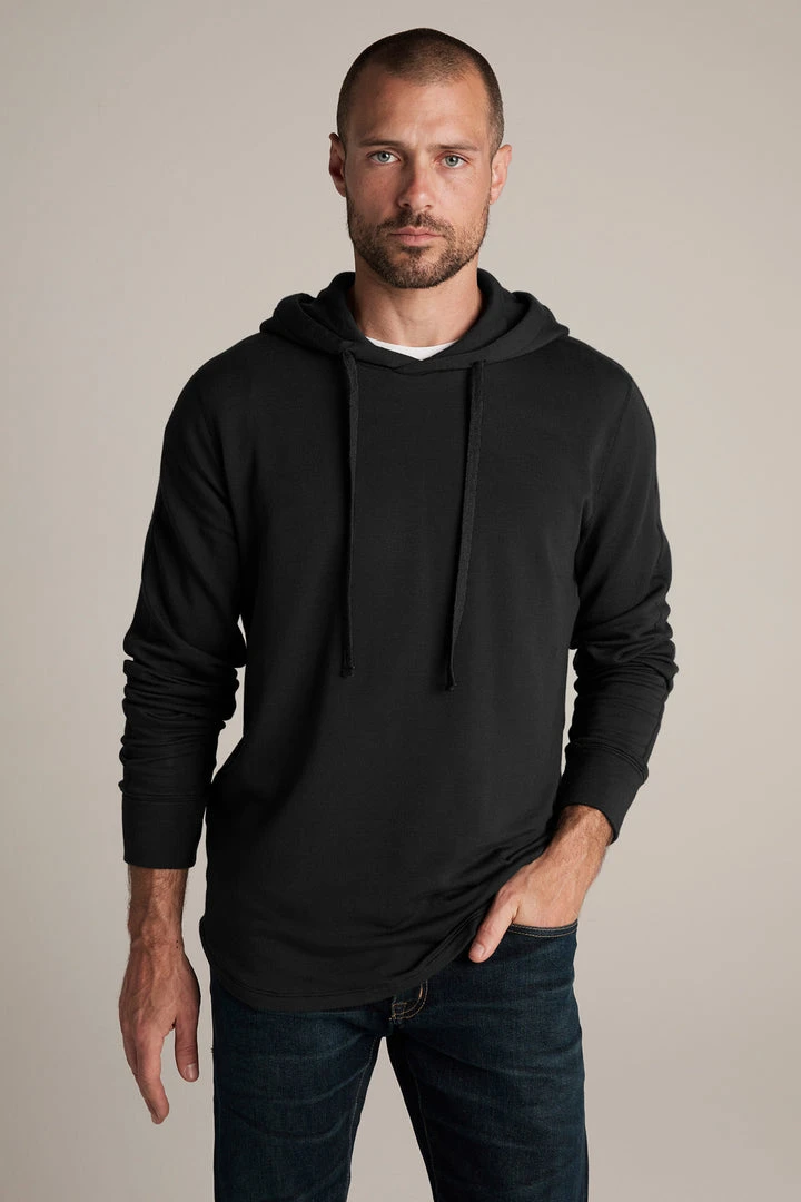 Workout partner. Crafted from a cotton blend knit, this is a lightweight version of a classic hoodie. It features a scooped hemline, ribbed band at the cuffs and a hoodie with a jumbo cinch string.