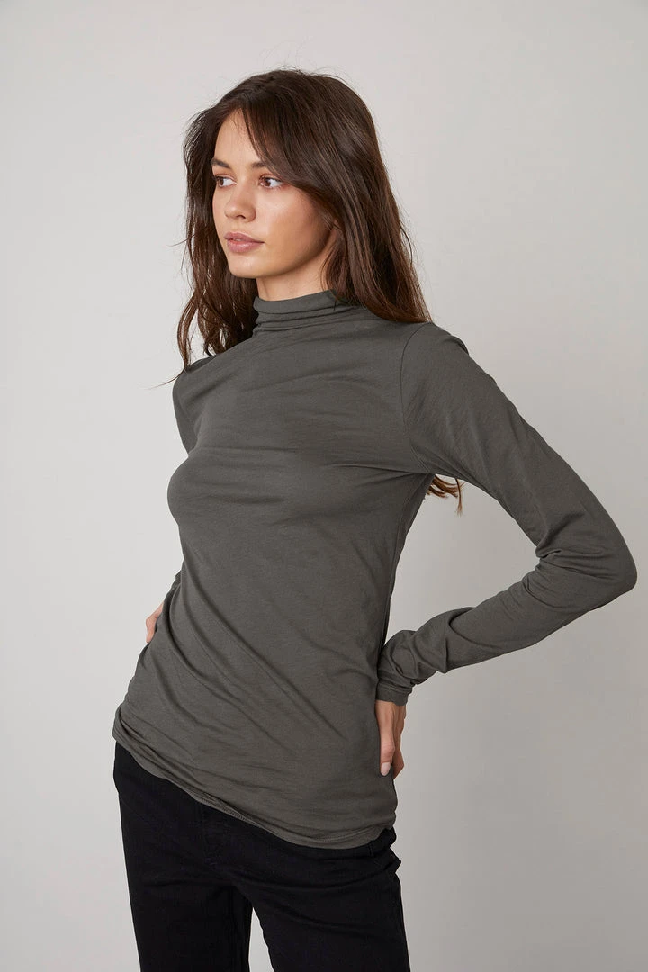 Velvet By Graham & Spencer TALISIA GAUZY WHISPER FITTED MOCK NECK TEE