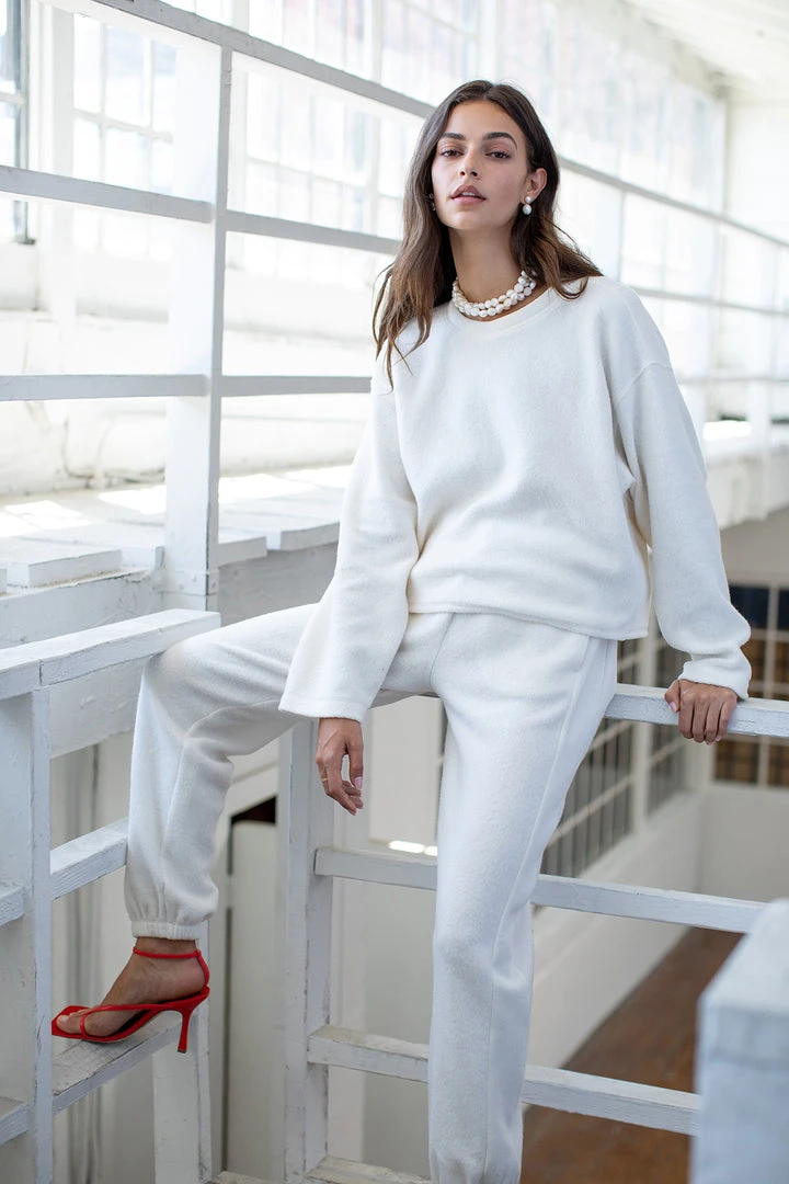 A perfect winter jogger with a medium-weight structured fleece and a cool, roll-waist option (feel free to wear unrolled for extra slouch). A tapered leg with hidden slash pockets. Pair with the matching Arissa top.