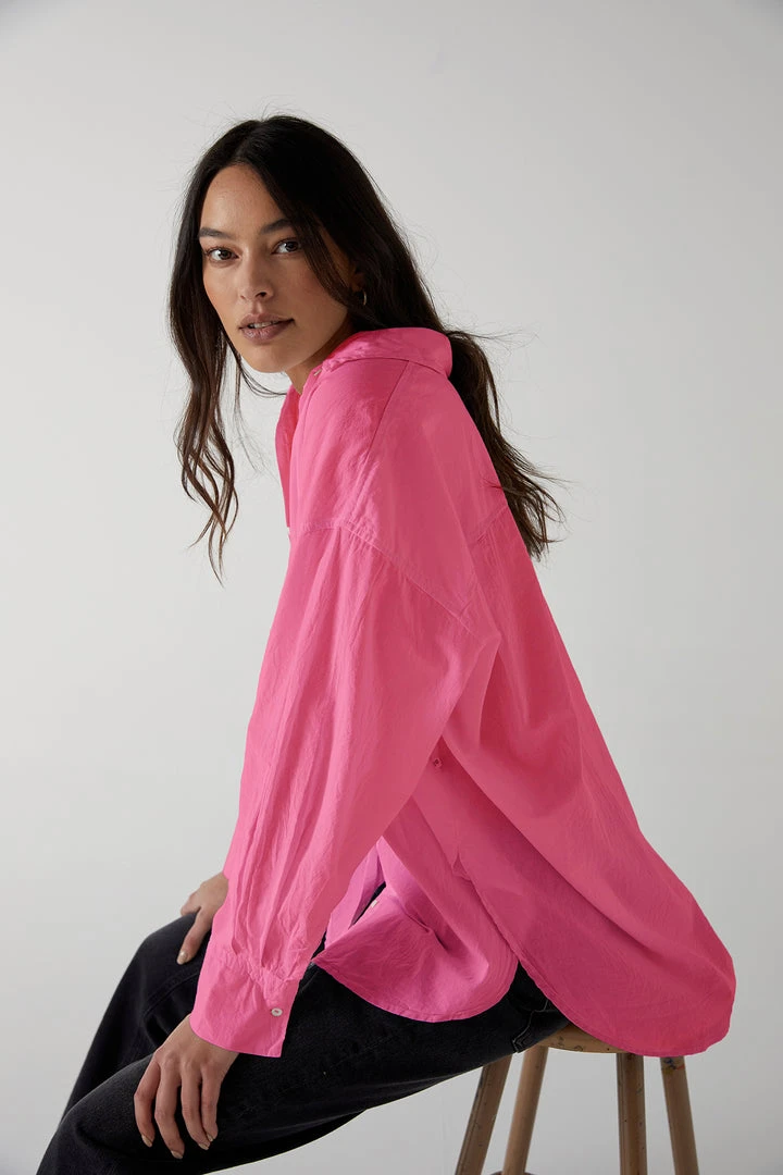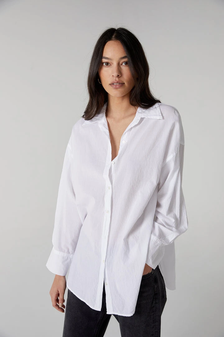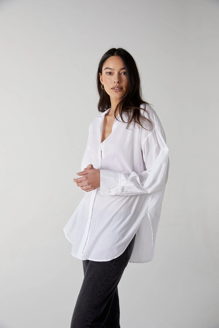 A soft cotton shirting in a borrowed-from-the-boys silhouette. Designed to be oversized with a drop shoulder seam and looks equally cool with a relaxed trouser for work, or a casual legging for Sunday afternoon.